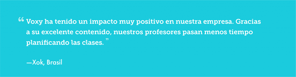 Aumenta la productividad de tus profesores aprovechando nuestros cursos alineados con tu plan de estudio y ofreciendo tus propias clases en línea a través de la Plataforma para profesores de Voxy.